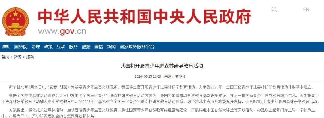 我国将开展青少年进森林研学教育活动