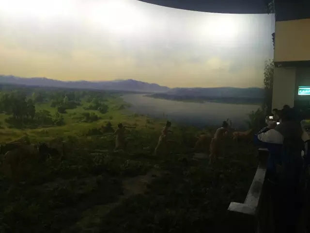 进入博物馆后,左边一排是平房,看上去像是五十年代的建筑,灰色的墙壁,大尖屋顶,这里就是半坡遗址出土文物的展览大厅。里面由三部分组成,一展室展出在半坡遗址发现的生产工具,有石器、渔具、纺轮、骨针、鱼钩、鱼叉等;二展室为宏大的半景复原场景,可以由此了解半坡人生产活动的各种场面;三展室展出的文物反映了半坡人的社会生活、文化艺术和各种发明创造,尤其是半坡出土的彩陶器,那是相当精美,这些陶器上的图案有几何纹,有动物纹,或神秘莫测,或丰富生动,无论是几何纹还是动物纹,莫不令人赏心悦目,一件件都是难得的艺术品。其中,最著名的就是人面鱼纹盆了——当然,现在这件珍宝早已入藏国博。