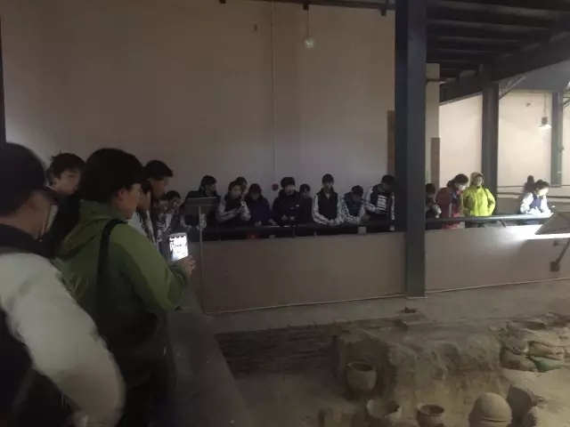来到半坡最重要的就是要看当年的村落遗址。走进遗址大厅,庞大的村落遗址尽现眼前,那种震撼之感无以言表!同样是教科书中大书特书过的半地穴式方形屋,它的遗迹现在就静静的躺在同学们的眼前,让同学们仿佛回到了六千年前,真切的感受到先民们的日常生活。