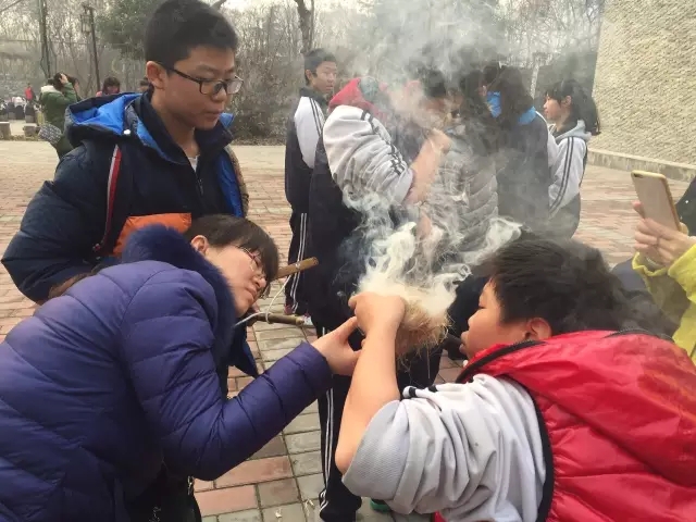 除去各种的参观,同学们还亲自体验了钻木取火、陶器钻孔、植物锤染等史前活动,让同学们在体验的过程中受益匪浅。钻木取火的工具和修补陶器的方式让同学们再一次见识到史前村民的智慧。