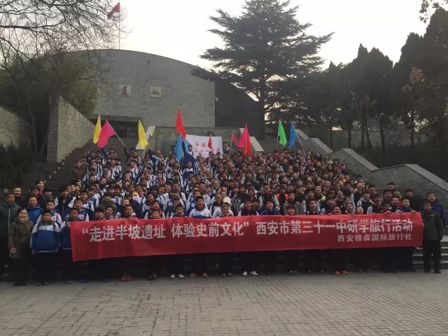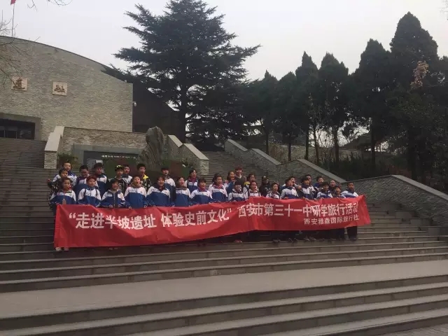 2016年12月9日,为了学习史前文化的知识,感受史前文化的魅力,雅森国旅组织西安市31中七年级和八年级的师生,来到了著名的半坡博物馆。对于大名鼎鼎的半坡遗址,同学们可以说既熟悉又陌生。说熟悉,那是早在历史的教科书上就已经接触过;说陌生,毕竟看到的只是书上的文字,远远不能和实物遗迹相提并论。半坡遗址,是一个典型的仰韶文化母系氏族公社村落遗址。1958年,在考古发掘的基础上建立了我国第一座遗址性博物馆――半坡博物馆。